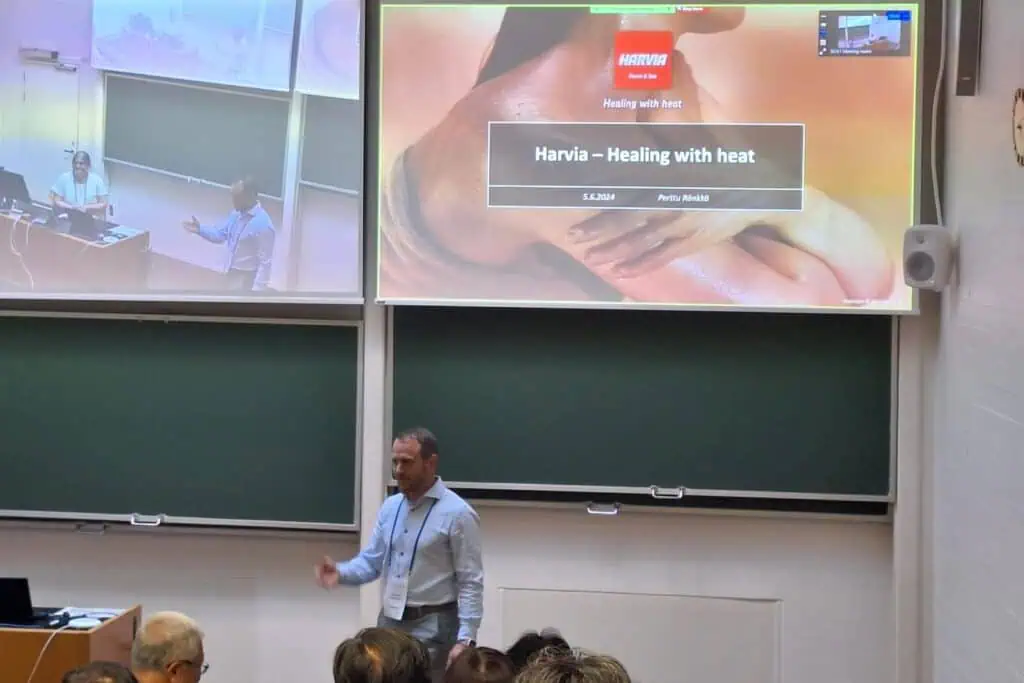 Seminaarin suomalainen keynote Perttu Rönkkö, Harvian edustajana, esitteli yhtiön pitkän historian ja menestystarinan, joka keskittyy sauna- ja kylpyläkokemuksen terveysvaikutuksiin. Harvia on vuonna 1950 perustettu yritys, joka aloitti pienestä, mutta on nyt maailman johtava sauna- ja kylpyläratkaisujen valmistaja ja tiiviisti sitoutunut terveyteen ja hyvinvointiin.