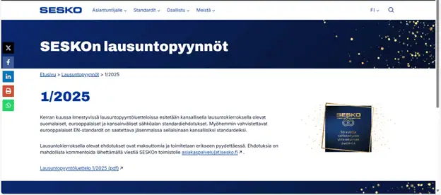 SESKOn verkkosivuilla julkaistaan joka kuukauden alussa lausuntopyyntöluettelo, johon on koottu eurooppalaiset ja kansalliset loppuäänestykset. Puhtaasti kansallisia standardeja julkaistaan sähköalalla harvoin, ja nekin tyypillisesti pohjautuvat merkittäviltä osin IEC:n ja CENELECin standardeihin. Esimerkkejä tällaisista standardeista ovat SFS 6000 -pienjänniteasennusstandardi, SFS 6002 sähkötyöturvallisuusstandardi sekä ohjauskaapelistandardit. Näihin voi palauttaa lausunnon suoraan SFS:n lausuntopalvelussa.